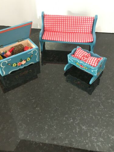 Vintage HTF Miniature Wood Furniture DORA KUHN German Chest Sm Cradle Bench 3