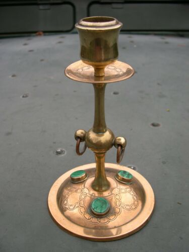 Title (ebay affiliate link): ARTS & CRAFTS BRASS AND BRONZE CANDLESTICK WITH CABOCHONS & CELTIC ? DECORATION