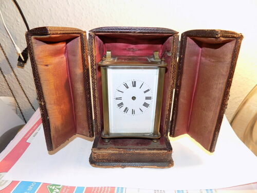 ANTIQUE FRENCH 8 DAY CARRIAGE CLOCK & LEATHER CASE