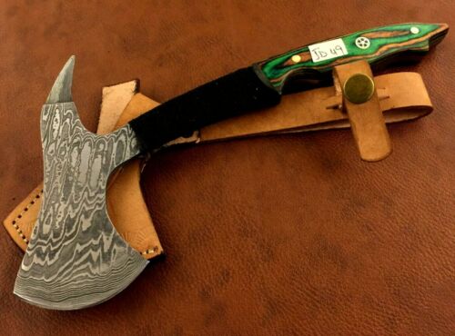 Title (ebay affiliate link): Handmade Blacksmith Damascus Steel-Hatchet- Axe-Camping-Outdoor-JD49
