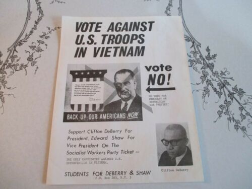 Title (ebay affiliate link): 1964 SOCIALIST WORKERS POSTER DEBERRY AND SHAW LBJ VOTE AGAINST VIETNAM