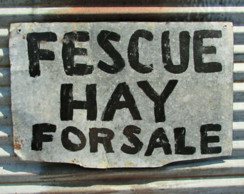 VINTAGE FESCUE HAY SALE GALVANIZED SIGN BARN FARM HOUSE PRIMITIVE RANCH METAL
