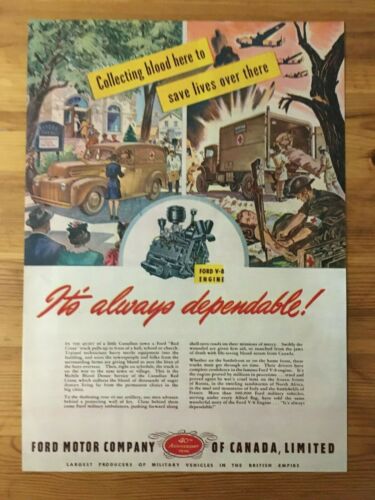 STUNNING 1944 CANADIAN TRUCK AD CANADA FORD WWII RED CROSS ARMY WAR BATTLE