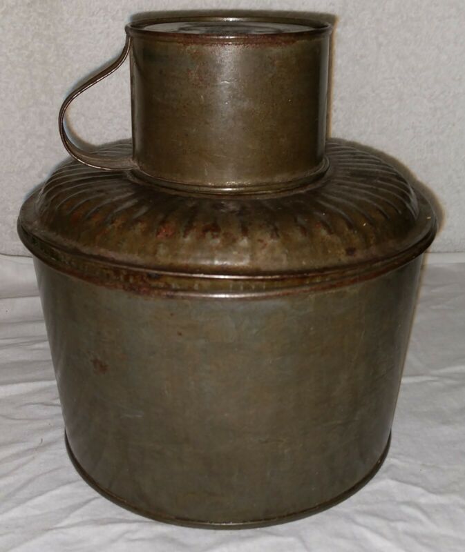 Antique Tin Round 3 piece Primitive Miner''s Workmans Lunch Box