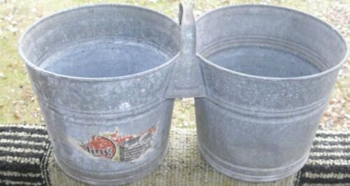 Vintage Galvanized Wheeling Co. Twin Bucket Double Pail # 1082