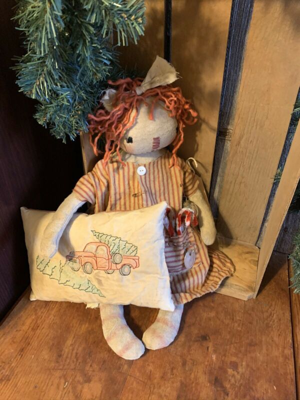 Title (ebay affiliate link): Primitive Raggedy Annie Doll Red Truck Pillow Vintage Christmas Ornament