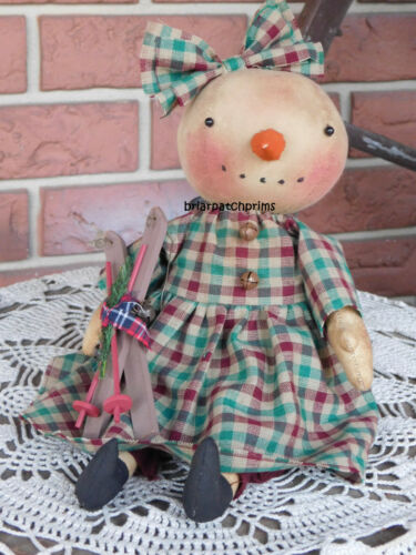 Primitive Christmas Snowgirl Doll w her Skis Snowman Winter Decoration Folk Art