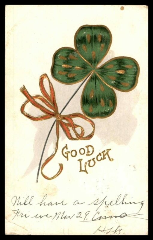 Title (ebay affiliate link): Mayfairstamps Card Good Luck Four Leaf Clover Bow Postcard wwc43939