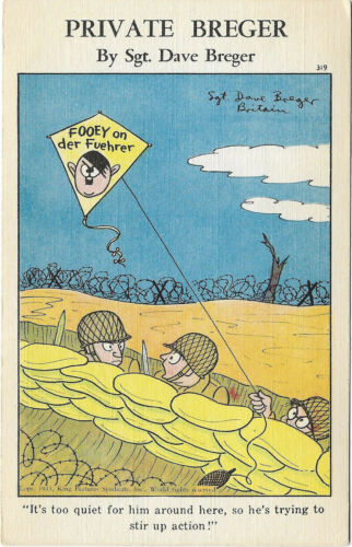 Title (ebay affiliate link): Linen comic postcard, Fooey on the Fuehrer, Private Breger, trying to stir up