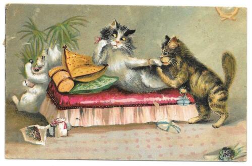 Cats chaise, jewels, presents vintage postcard Maurice Boulanger pmk 1908