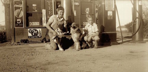 1930s photo Negative country Gas Pump Service Station 7up Coca Cola SODA Sign