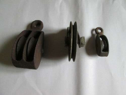 Title (ebay affiliate link): 3 Vintage Unbranded Metal Pulleys - Wheels Freely Turn