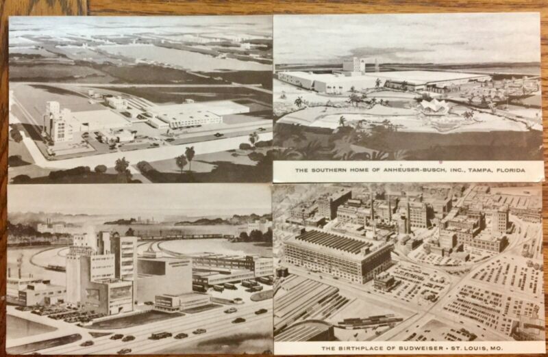 Title (ebay affiliate link): 4 Anheuser Busch Postcards/artist rendering: Tampa, LA, St. Louis, Newark