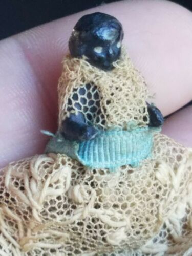 Dollhouse Miniature Antique Black Frozen Charlotte Doll with Lace Dress 1" tall