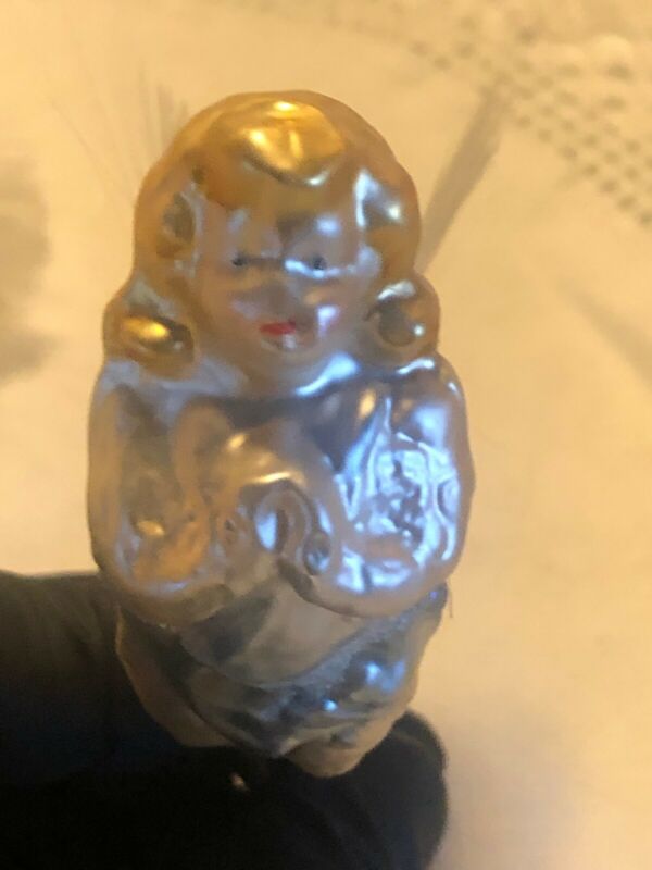 A Pair 2 Vintage German Angel on Clip Blown Glass Ornament 4" Santa Christmas