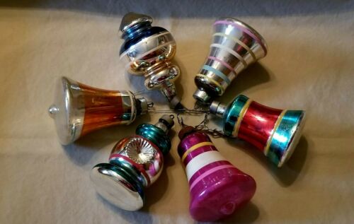 Title (ebay affiliate link): 6 Vintage Striped Mercury Glass Bell & Indents Christmas Ornaments