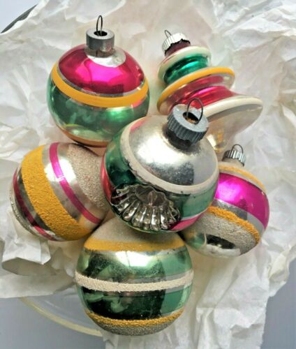 Title (ebay affiliate link): Vintage Shiny Brite Christmas Ornaments Mica Snow Pink Indent Mixed Lot Stripes