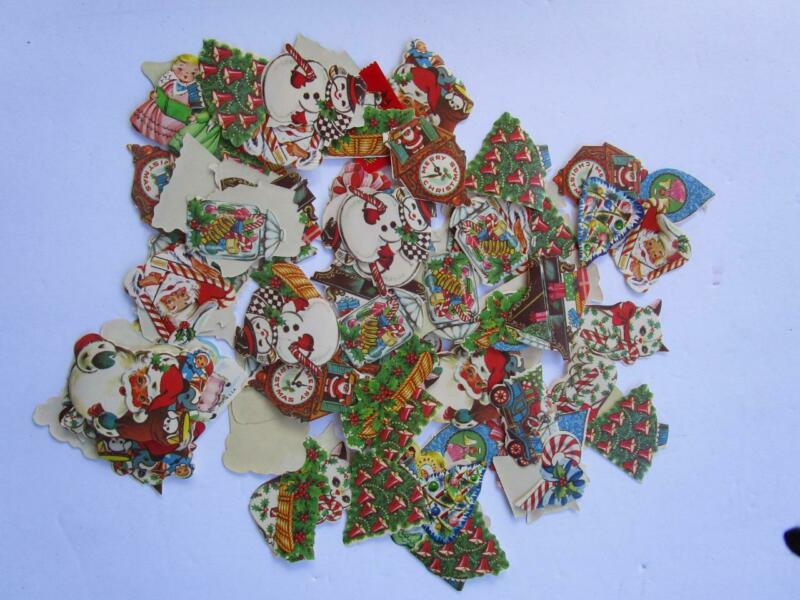 100 Vintage Dennison Eureka USA Christmas Gummed Seals Stickers Santa Angel