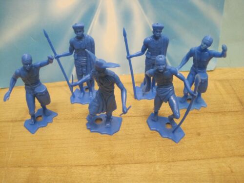 MPC MARX VINTAGE 1960s 6 AFRICAN SAFARI ZULU NATIVE 60MM PLASTIC TOY SOLDIERS