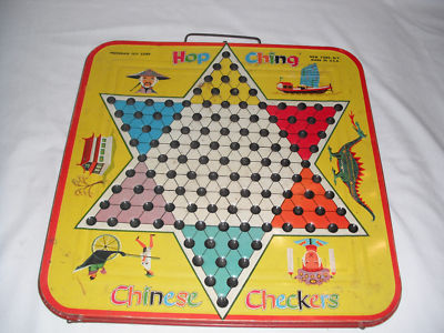 Pressman toy tin litho Hop Ching Chinese Checkers board