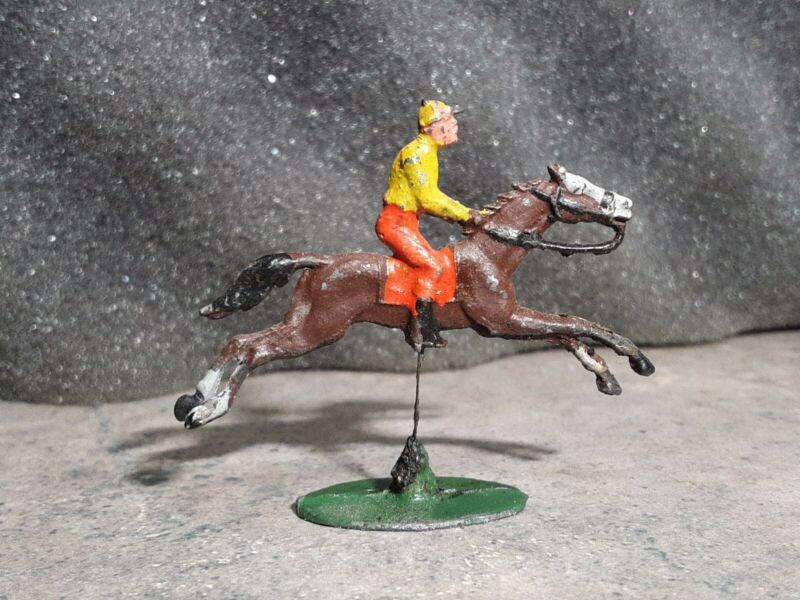 Antique Lead Horse And Jockey Toy Figure Painted 1 1/2"