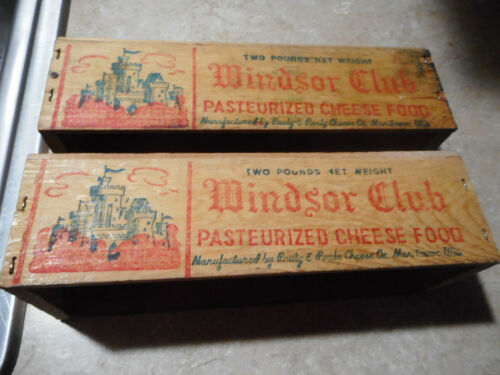 LOT 2 VINTAGE WINDSOR CLUB PASTEURIZED CHEESE WOODEN BOXES 2 LB Manitowoc, Wisc.