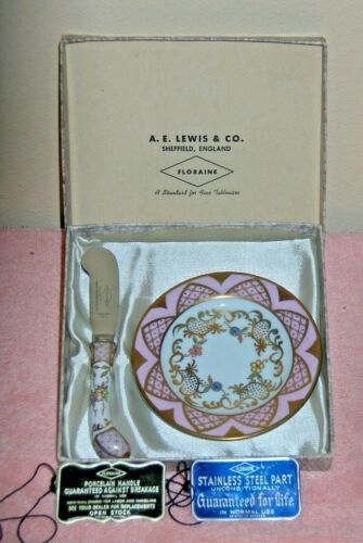 VINTAGE FLORAINE - Butter Pat & Knife, A. E. Lewis & CO. Germany British Zone