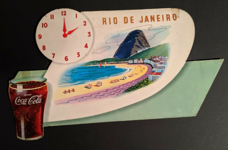 Title (ebay affiliate link): 1953 COCA COLA Rio De Janeiro cardboard festoon sign. Coke die cut sign
