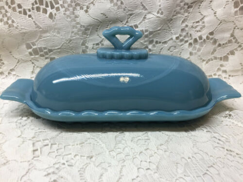 Blue Milk Glass serving domed stick butter dish tub opaque turquoise covered lid