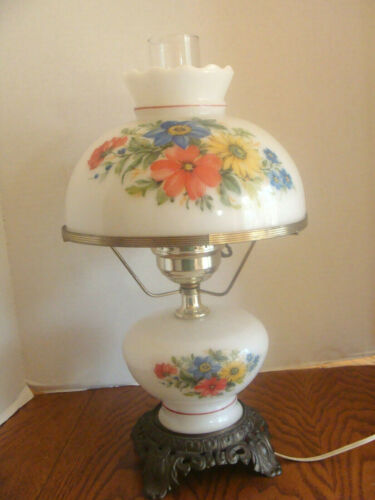 Title (ebay affiliate link): VTG 19" TALL GONE WITH THE WIND 3-WAY MILK-GLASS FLORAL HURRICANE LAMP-EUC