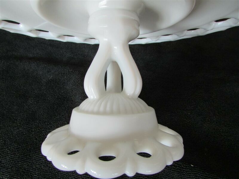 Westmoreland Doric Pattern Open Lace White Milk Glass Cake Plate Stand D-49