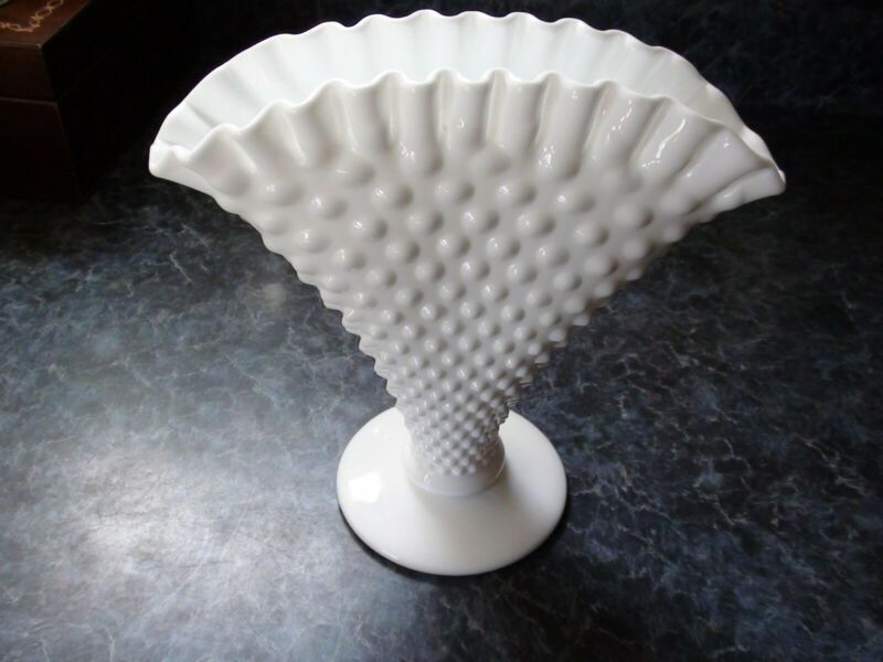 Title (ebay affiliate link): Hobnail Fenton Milk Glass Fluted Vase 8" H 8" W Vintage Ruffled Rim