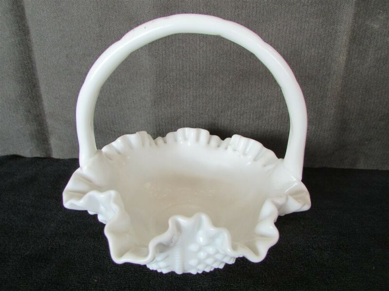 Large White Milk Glass Basket E-8