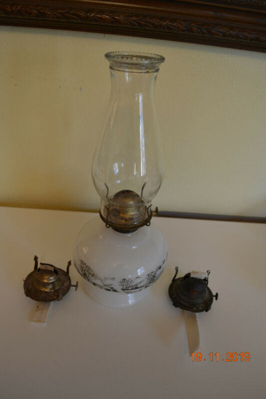 Title (ebay affiliate link): Vintage Currier and ives oil lamp milk glass with Farmhouse scene, Add''t Wicks