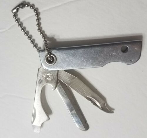 Title (ebay affiliate link): Vintage Pocket Key Chain 3 Blade Bassett Stainless Steel Knife Tool Set