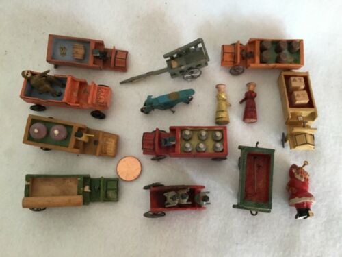 Title (ebay affiliate link): Lot Miniature German Erzgebirge Carved Wood Penny Toy Putz Trucks Santa People
