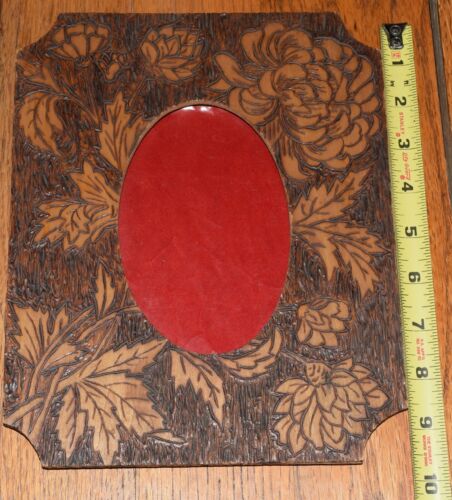 Title (ebay affiliate link): 1911 Pyrographic Pyrography Chrysanthemum Peonie Photo Frame Plaque