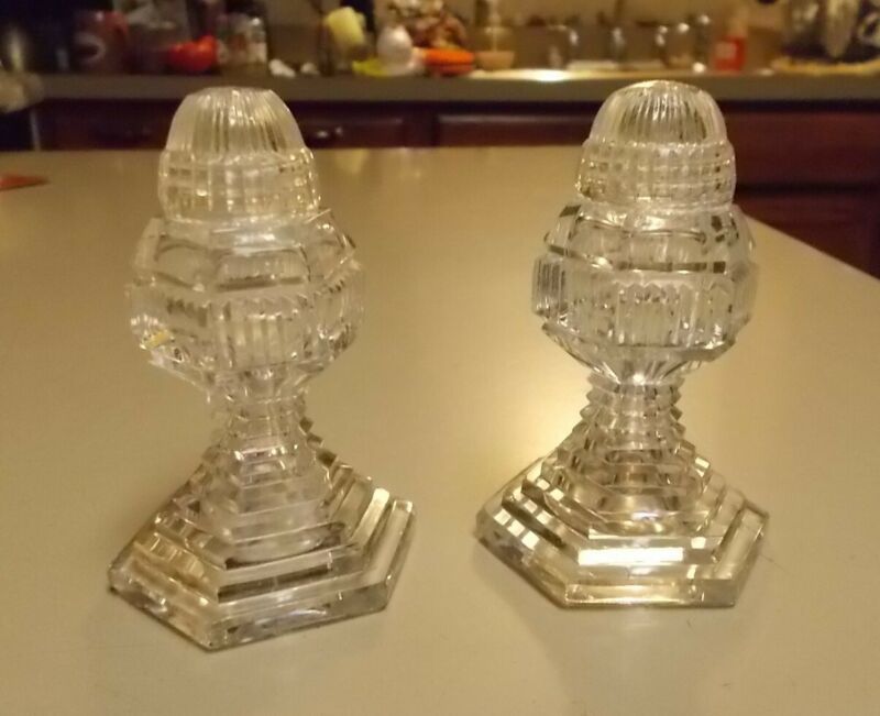 Title (ebay affiliate link): VINTAGE CUT CRYSTAL GLASS SALT & PEPPER SHAKERS SCREW ON GLASS TOPS NICE