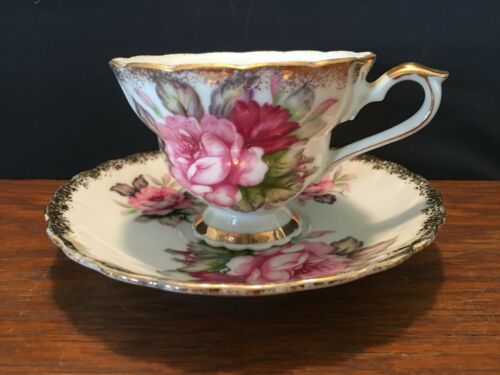 Vintage Pink Rose Gold Trim Tea Cup & Saucer