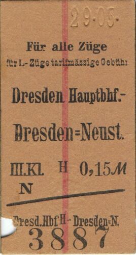 Title (ebay affiliate link): Railway tickets Germany Dresden Central to D. Nuestadt third class single 1929?