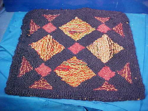 Title (ebay affiliate link): 19thc COUNTRY Primitive HAND HOOKED Folk Art TABLE MAT w DIAMOND Pattern