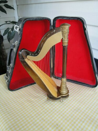 Title (ebay affiliate link): Miniature Dolls Dollhouse Harp Antique Look Furniture Music Instrument Very NICE