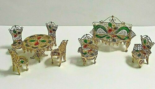Title (ebay affiliate link): Antique Vintage Miniature 800 Silver Filigree Enamel Dollhouse Furniture 8 Piece