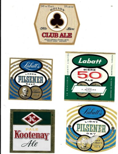 Title (ebay affiliate link): Canada, Nice lot of 5 old beer labels., Molson, Labatt, Kootenay canadian beer