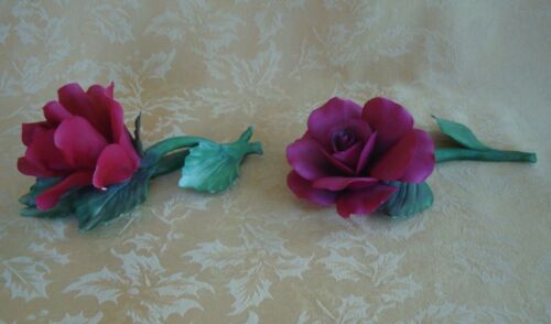 TWO VINTAGE CAPODIMONTE RED ROSE FLOWERS FIGURINES
