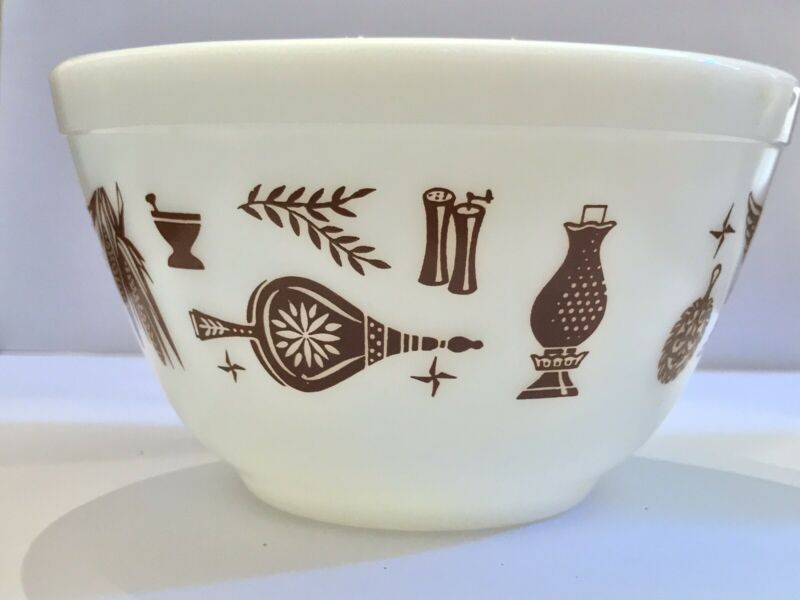 Title (ebay affiliate link): 1 1/2 Pint Pyrex Nesting Bowl White Milk Glass And Brown Early American Pattern