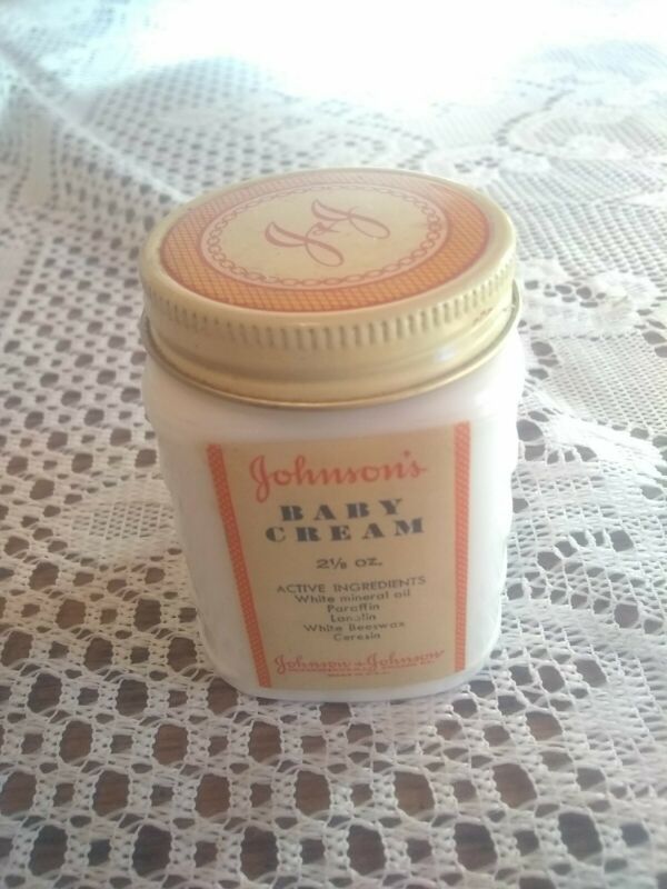 Title (ebay affiliate link): Vintage 1940s Johnson & Johnson Baby Cream Milk Glass Jar Paper Label With Cap