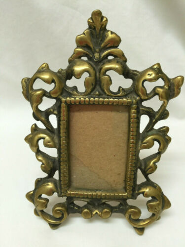 Antique Ornate Cast Brass Picture Frame with Easel