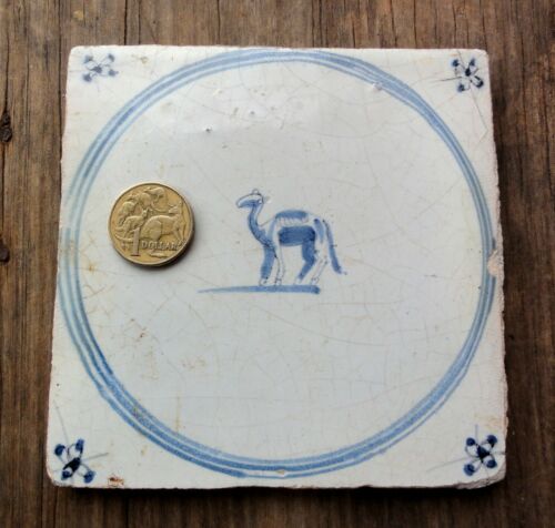 Title (ebay affiliate link): EARLY 18thC DUTCH 5" SQUARE BLUE PATTERN TILE. CAMEL. GENUINE. DELFT ??