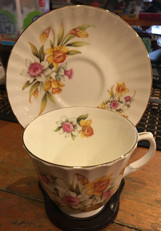 Vintage Floral Tea Cup & Saucer DUCHESS Fine Bone China England Pink Yellow